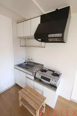 キッチンは、二口ガスコンロが設置済み。その他調理スペースや収納など充実しています。