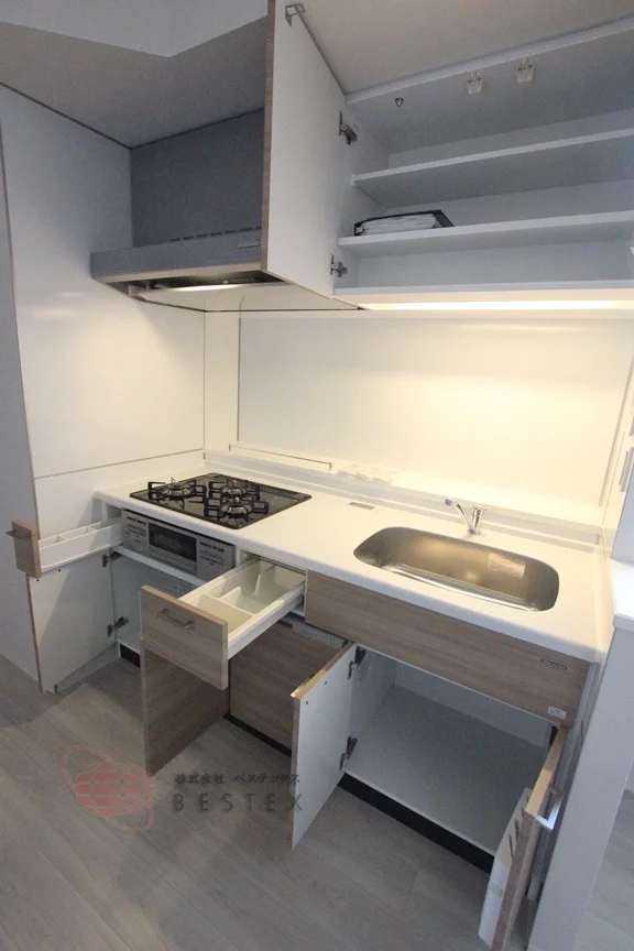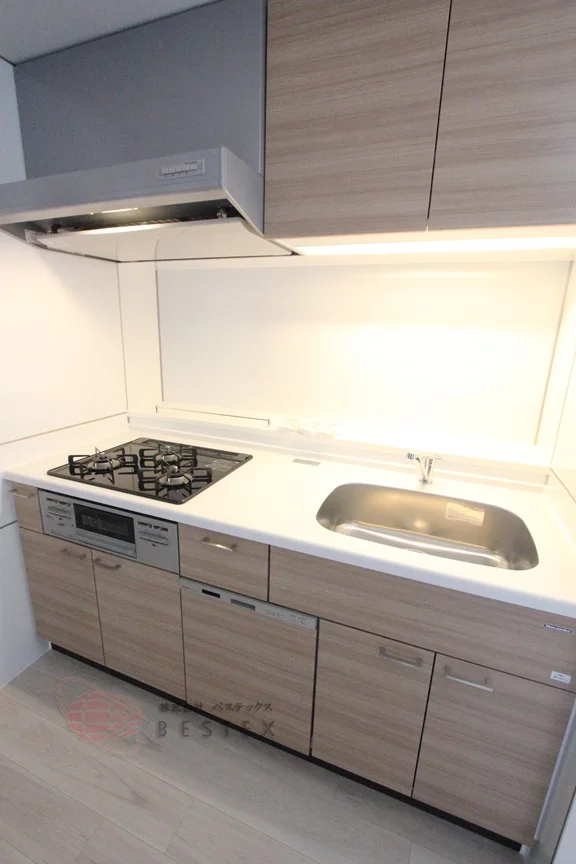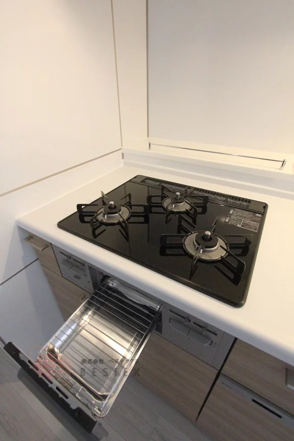 ③.キッチンは3口ガスコンロ+グリル付きのシステムキッチンです!