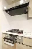 ガス3口システムキッチン完備でお料理はかどります。