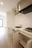 キッチンは2口ガスコンロで調理スペース・収納スペースも十分に確保しております。冷蔵庫・電子レンジもキッチン横に置けるので効率的にお料理を進めることができます。