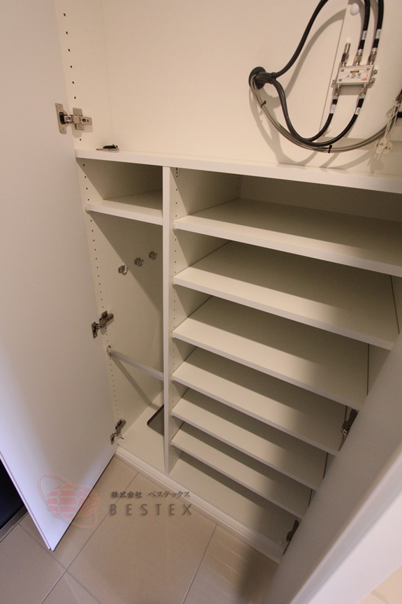 また、設備面も充実しており、オートロック、防犯カメラ、TVモニター付インターホンといった強固なセキュリティに加え、宅配ボックスやインターネット無料(※U-NEXT for S付き、詳細要確認)など、忙しい都市生活をサポートする便利な設備が標準装備されています。特に、水回りの浴室乾燥機や温水洗浄便座、充実した収納スペースは、日々の生活の質を高めてくれるでしょう。