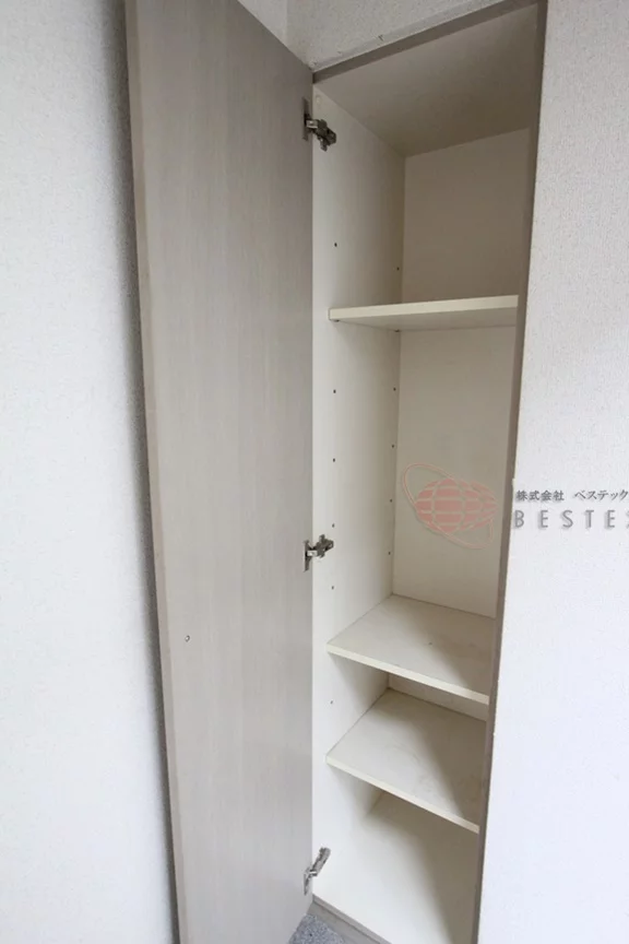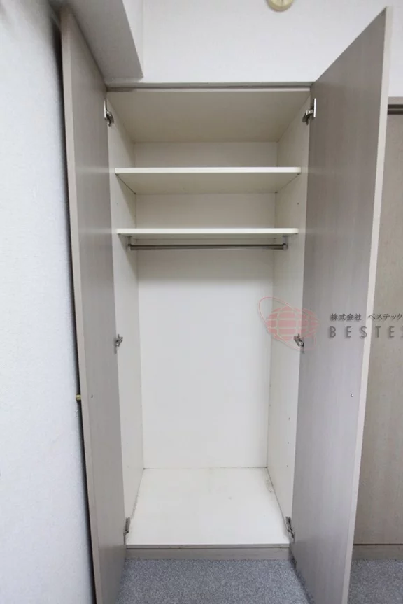 大きめのクローゼットは、キッチン部分に完備しておりますので、居室の広さを邪魔しない配置で無駄なく収納可能♪
