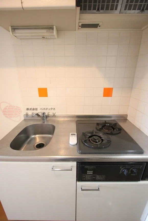 ⓷キッチンには2口ガスコンロが設置済み、火力重視の方はIHよりガスがおすすめです♪
