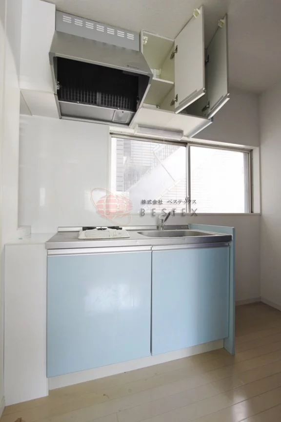 居室にある青い扉を開けるとキッチンスペースです。