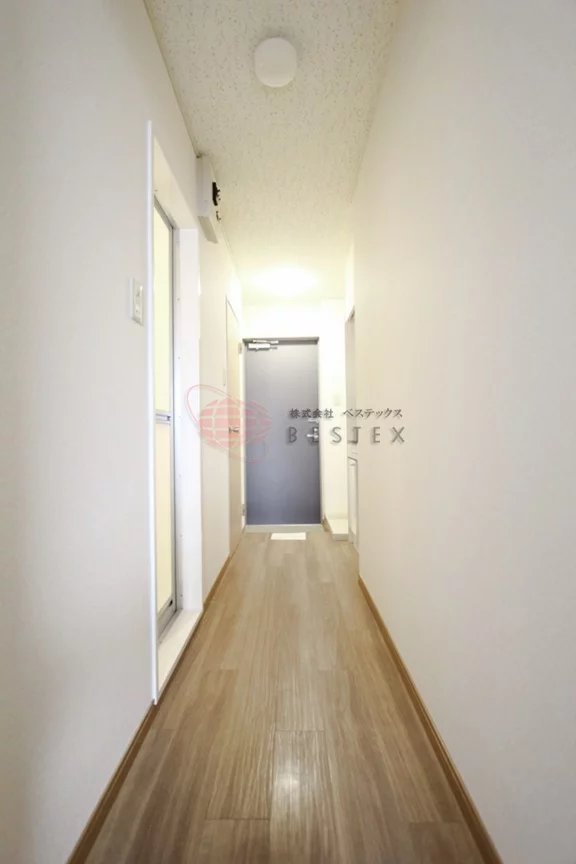 廊下部分にキッチンと洗濯機置場、その反対側にトイレとお風呂です。
