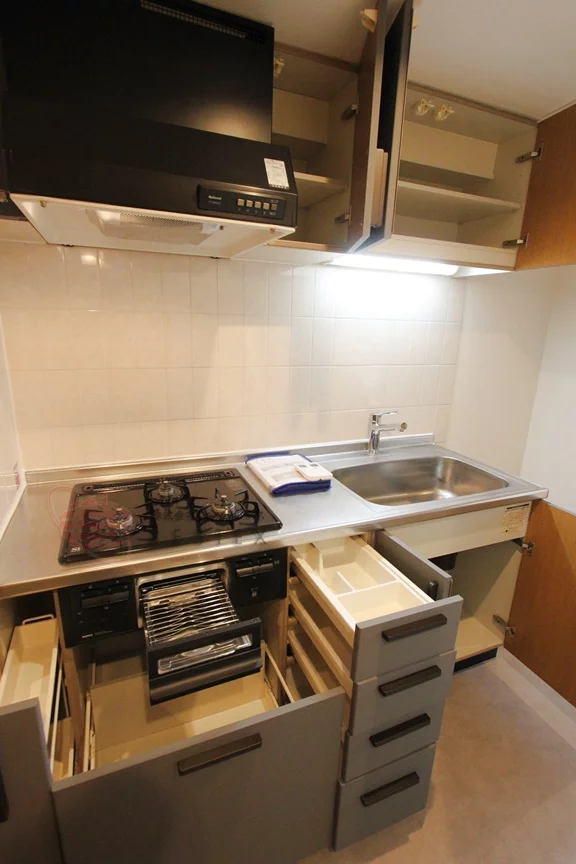②.キッチンは、2口ガスコンロのシステムキッチン!