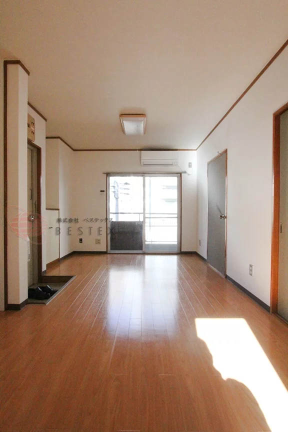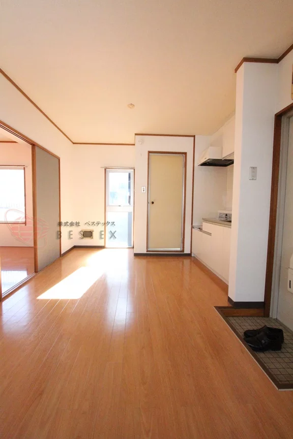 最上階角部屋で開放感のあります。お部屋は、約10帖のリビングと約4.5帖・約6帖の洋室からなる2LDKタイプとなっております。