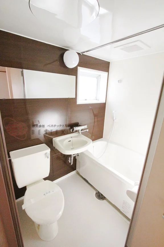 築年数は、3点ユニットバスとなっておりますが新規交換工事を行っているので、ホテルのような綺麗さ広さがございます。3点ユニットバスのメリットとしては、トイレ・お風呂・洗面台のお掃除が一回でまとめて行えるので、お掃除の手間も省けます。