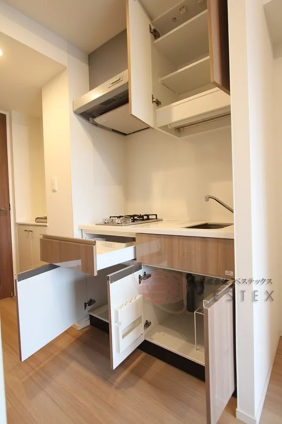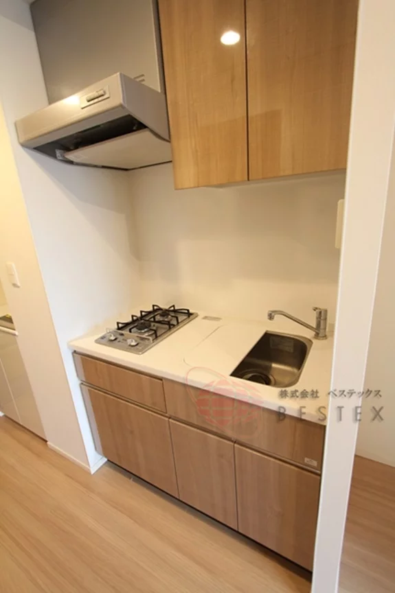 キッチンは2口のガスキッチンで、清潔感があります。