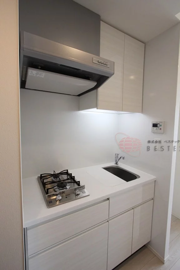 キッチンは2口のガスキッチンで、清潔感があります。