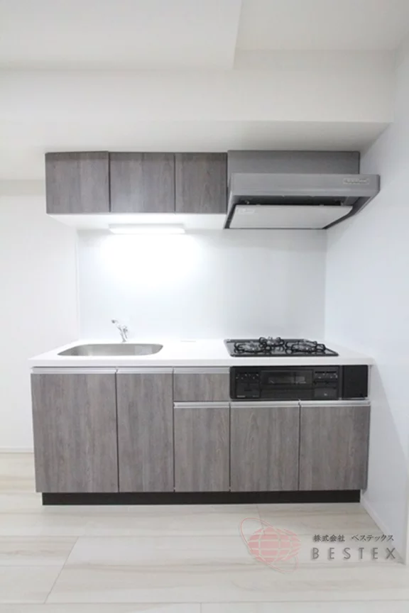 キッチンは3口のガスコンロ・システムキッチンでございます!お掃除楽ちん・お料理もはかどりますね♪