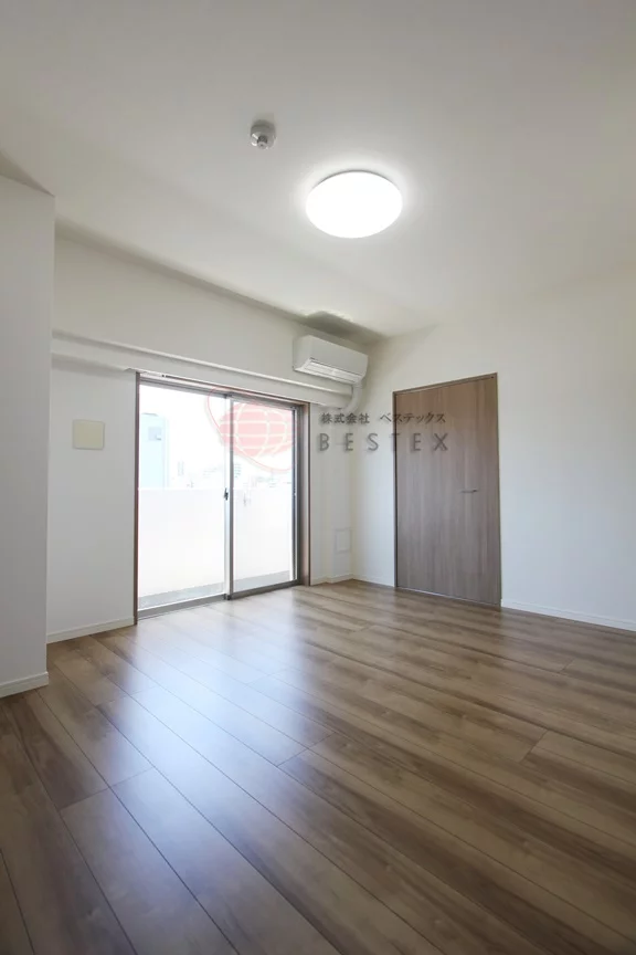 お部屋は、1Kタイプで洋室約8.0帖と広々とした空間で形もよくレイアウトしやすいお部屋となっております。