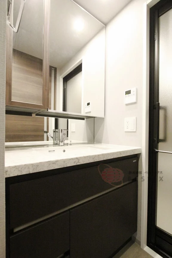 大きめの独立洗面台があり、忙しい中での準備もゆとりを持ちながら行えます。
