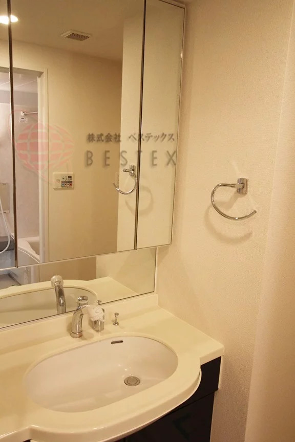 独立洗面台は忙しい朝も、お休みになる前にも、毎日の生活にあると役に立つこと間違いなし。化粧台としての使用も可能と便利な設備です。