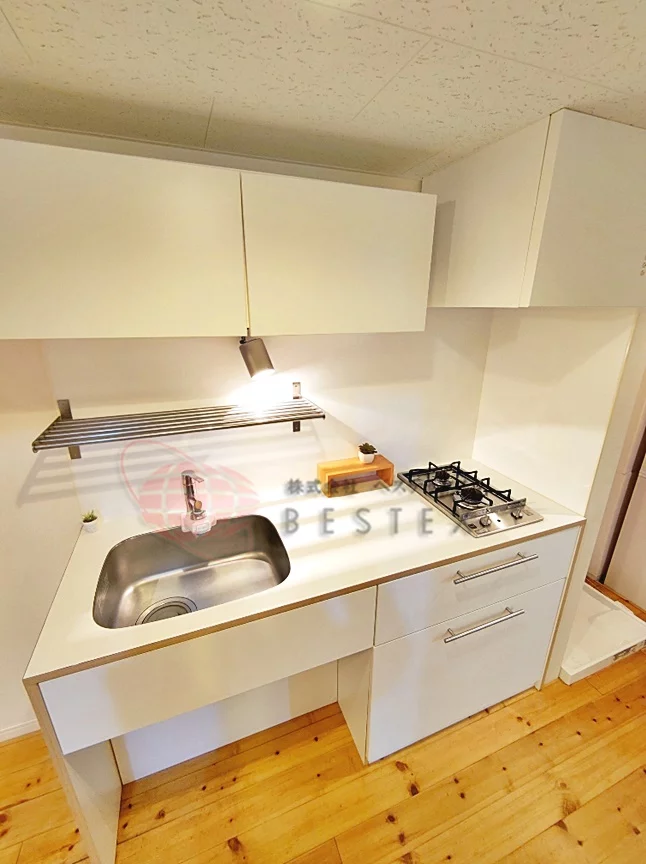 ガス2口コンロ完備のビルトインキッチン♪