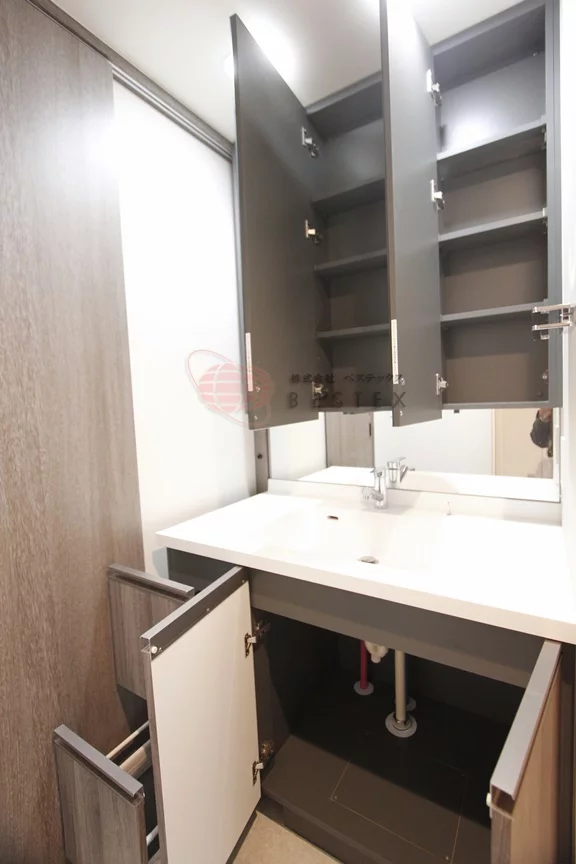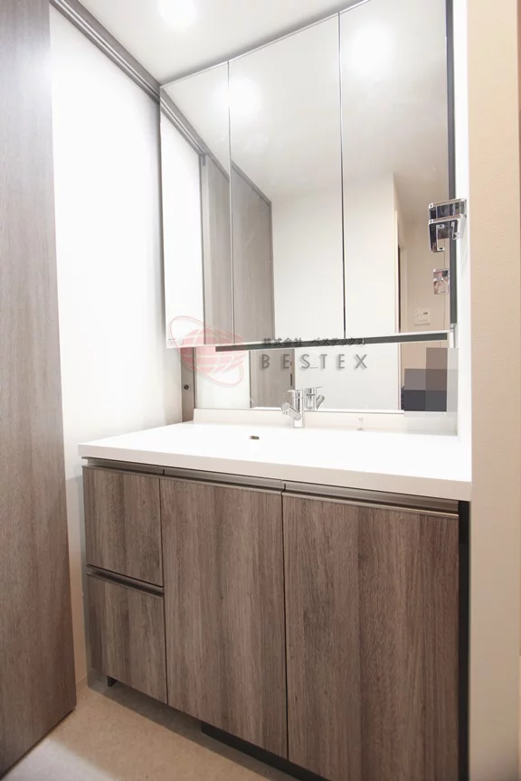水周りも綺麗で、三面鏡仕様の独立洗面台で追い焚き・浴室乾燥機付きお風呂となっております。トイレは、2リ以上の入居でも使いやすい完全セパレートのウォシュレット機能付きトイレとなっております。