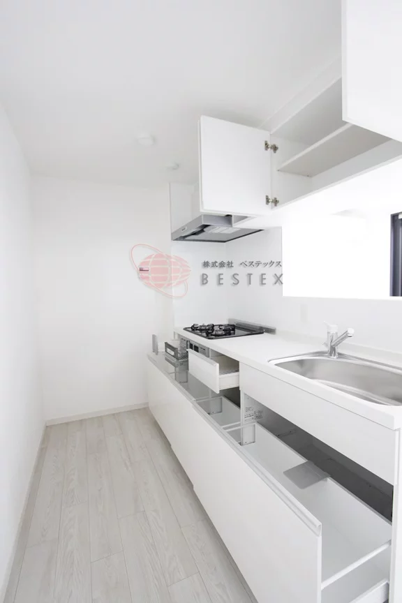 リビングは、約14.6帖で梁がないのでかなり開放感のある部屋となっております。リビングと対面式の3口ガスコンロキッチンで調理スペース・収納スペースも十分に確保されております。また、冷蔵庫・電子レンジもキッチン横におけるので効率にお料理を進める事ができます。