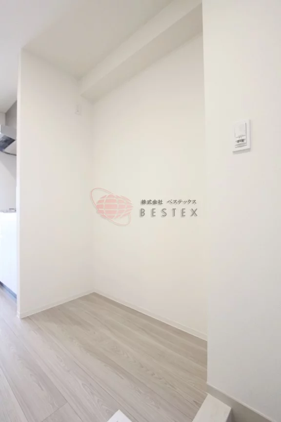 横の空間が広いので、冷蔵庫以外にも色々置けちゃえますよ!
