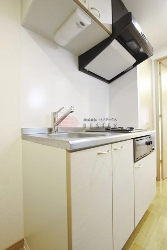 キッチンは2口ガスコンロのシステムキッチン!もちろん冷蔵庫置場も有り、お料理が捗ります♪
