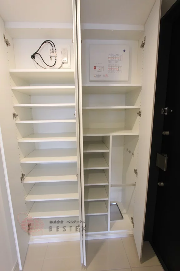 玄関にはシューズボックス、リビングにも収納があります!