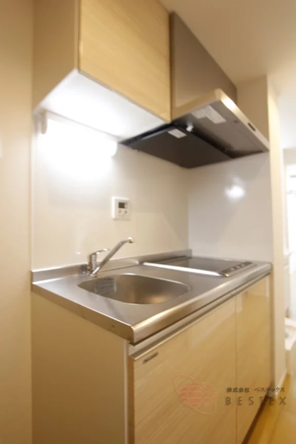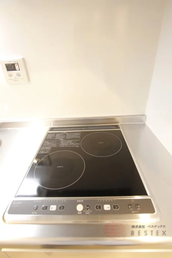 キッチンは2口IHコンロですので、お料理がしやすいのにお掃除が簡単にできる便利なキッチンとなっております。収納スペースに冷蔵庫置き場もあるので自炊される方もご安心ください。