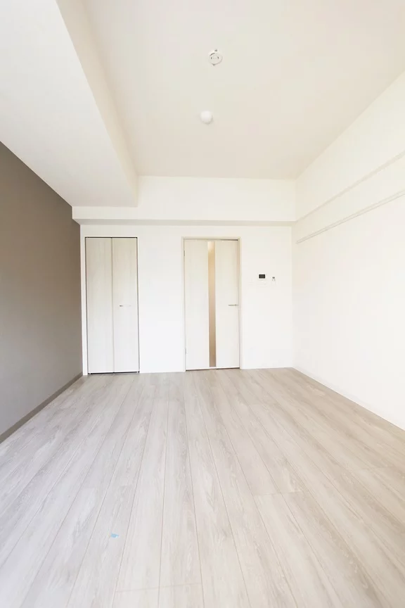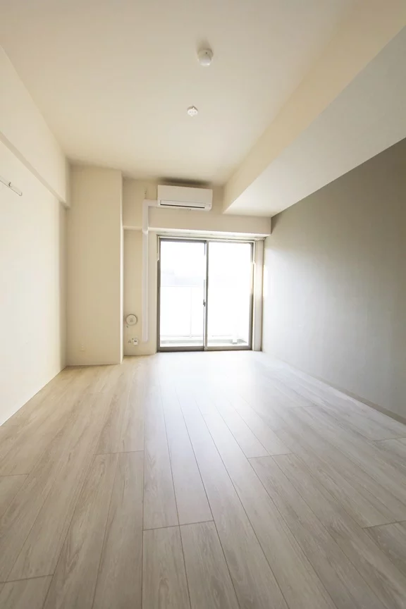 居室約8.5帖と単身向けのお部屋にしては、かなり広々とした空間になっております。北向きのお部屋ですが、5階部分と眺望を遮る建物もなく明るい印象となっております。また、フローリングも白基調でおしゃれな空間です。エアコンも完備しているので季節問わず快適な生活を送ることができます。