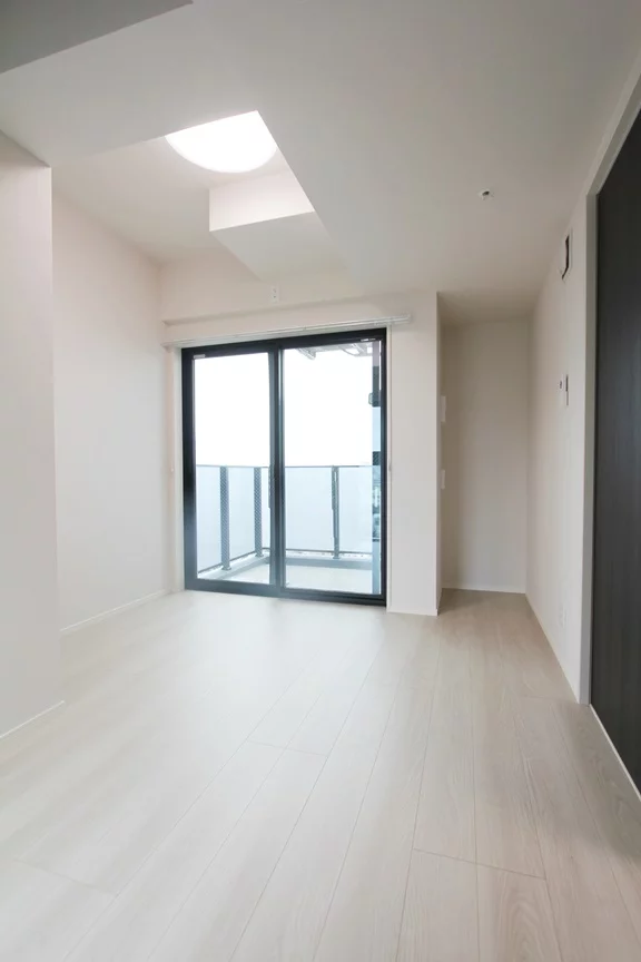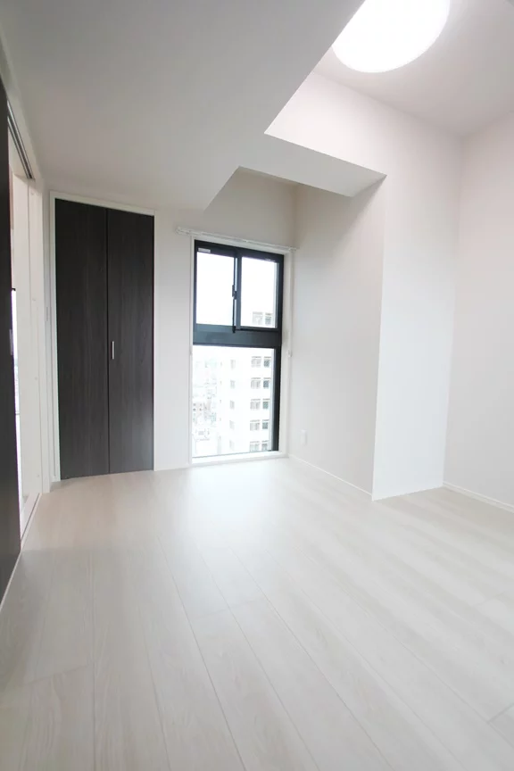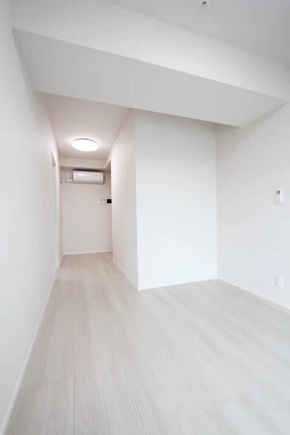 キッチンや水周り、リビングな設備や居室のスペースが取られているお部屋になります。角部屋で窓が多く白基調のフローリングや壁紙で、窓も多く気数も多いので、明るい印象となっております。風通しにも期待できそうですね。