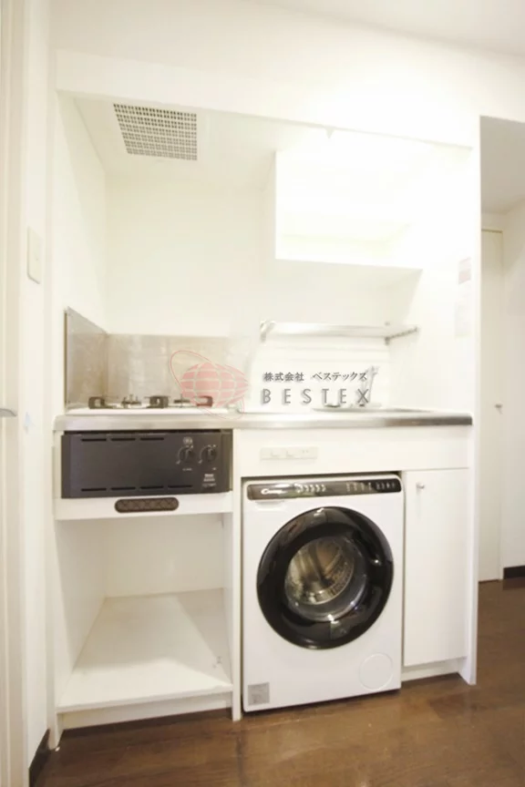 驚いたのはキッチンがガスコンロ2口&洗濯機設置済みという点です。