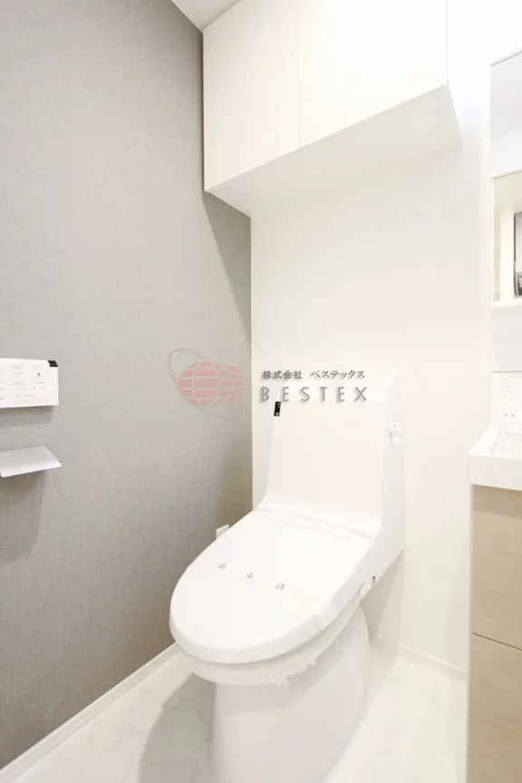 上部には棚もありますので、トイレットペーパーなどはこちらへどうぞ。