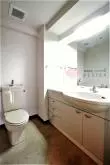 水まわりは広めに造られており、洗面室にはトイレと洗面台があり、こちらは脱衣所としても使えるスペースです。