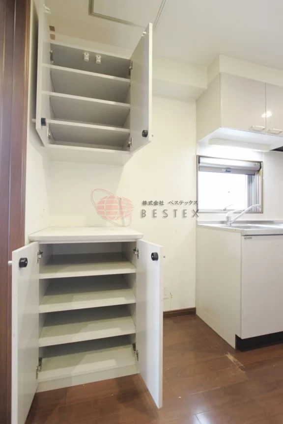 まずはキッチン横に収納棚。