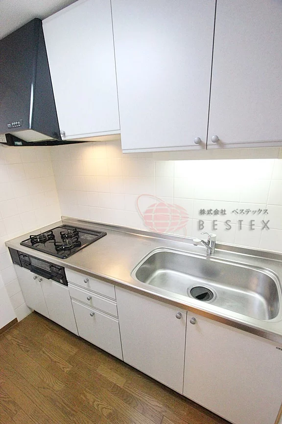 料理がはかどる、ガス3口システムキッチン(グリル付)完備。