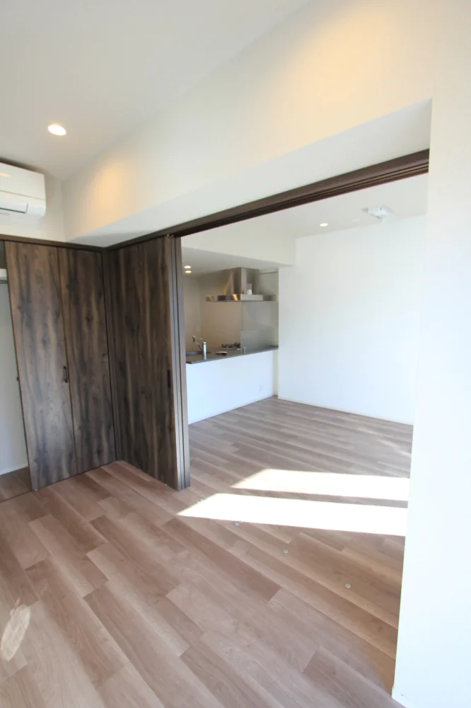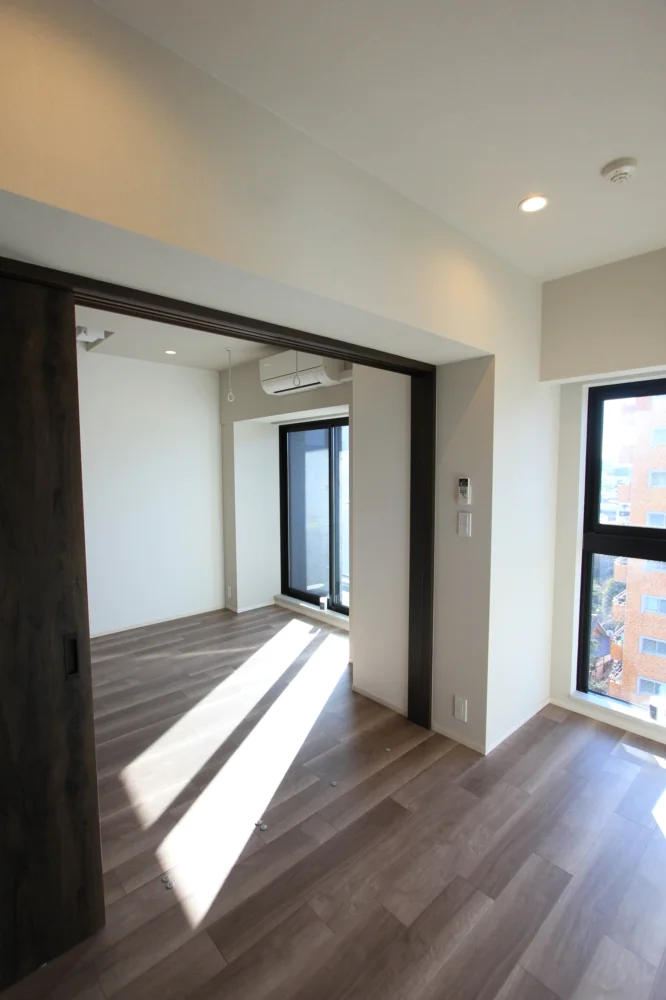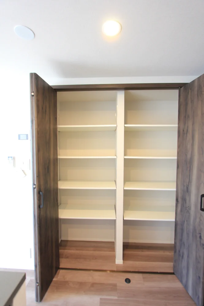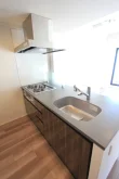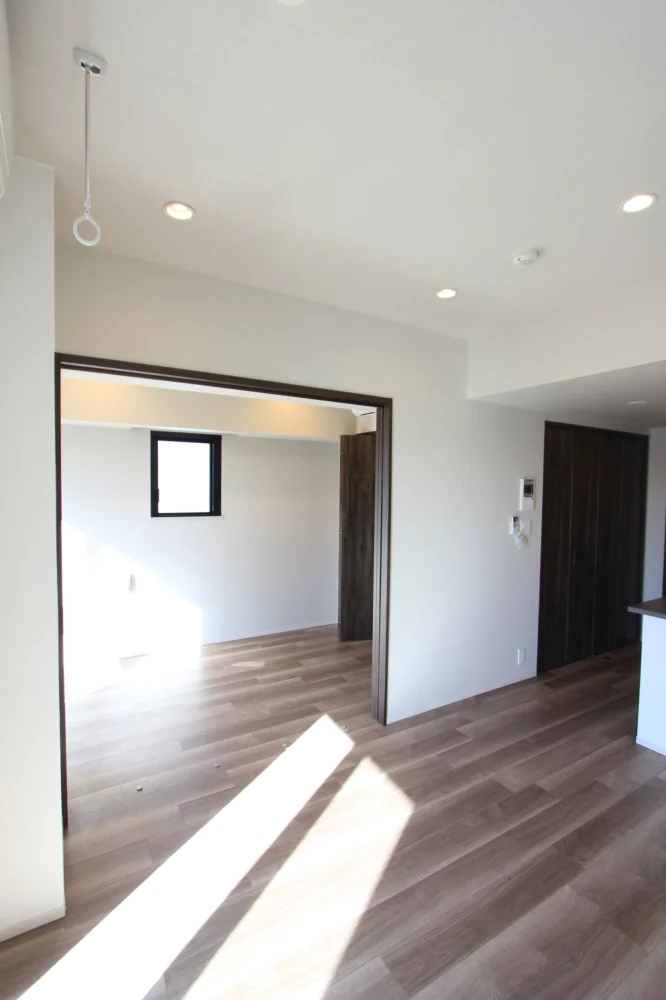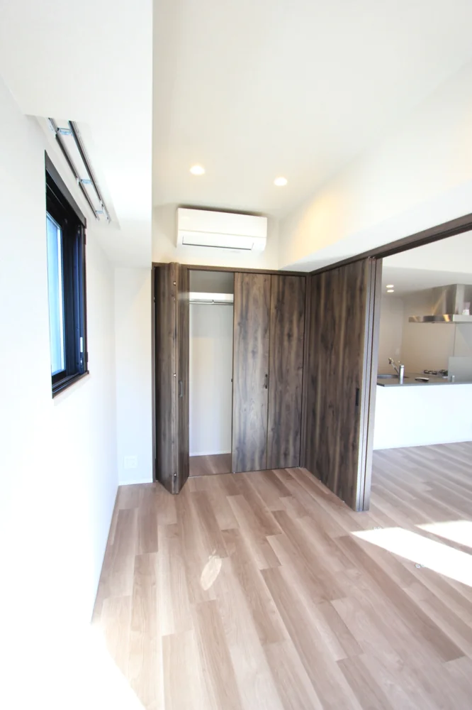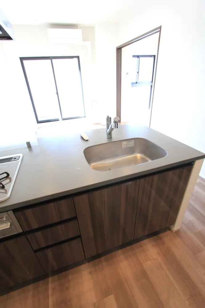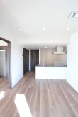 リビングは約11.1帖と縦横にしっかりとスペースが取られており家具家電のレイアウトがしやすい仕様となっております。キッチンはリビングを見渡せるカウンターキッチンなので、小さなお子様がいらっしゃっても安心してお料理を進めることができます。さらに三口ガスコンロで調理スペース・収納スペースも十分に確保されており、冷蔵庫・電子レンジもキッチンスペースにおけるので効率的にお料理を進めることができます。
