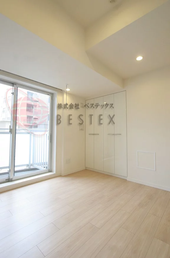 約8.0帖の居室は清潔感のあるフローリングが安心感を与え、クローゼットも大き目のタイプとなります。
