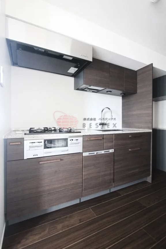 キッチンはグリル付き3口ガスコンロの大型システムキッチン!食洗器・ディスポーザーまで完備された高級仕様でお料理も快適に行なえます♪
