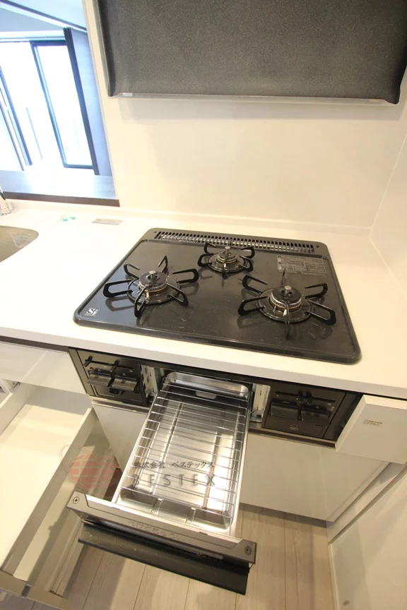 キッチンはシステムキッチン3口コンロとなり、シンクは広めの造りとなります☆