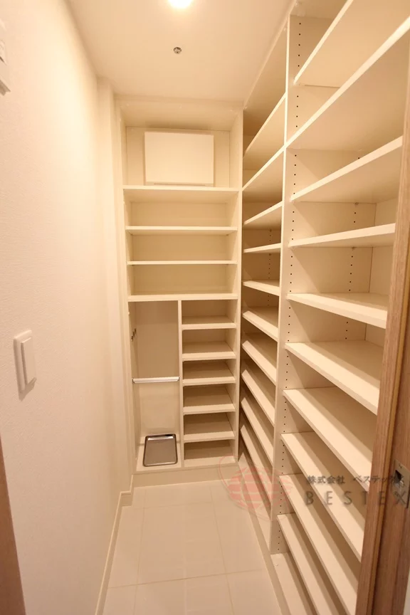 水回りも非常に充実しており、浴室乾燥機や追焚機能付きのバスルーム、機能的な洗面台など、日々の利便性を追求した設備が整っています。さらに、玄関横には専用のトランクルームも備わっており、季節物やアウトドア用品の保管にも困りません。