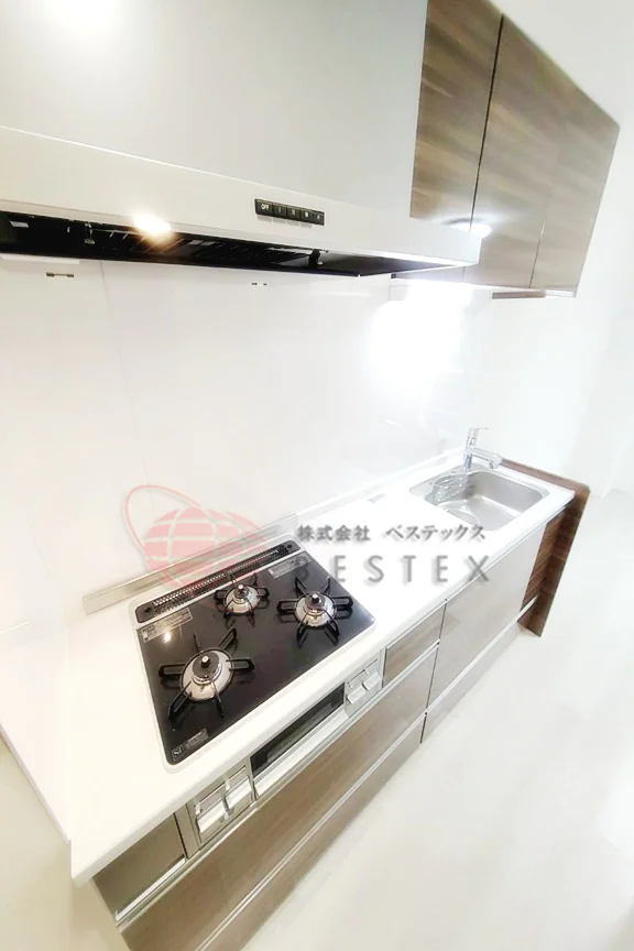 ガス3口システムキッチン、独立洗面台(シャンプードレッサー)、浴室乾燥機、給湯追い焚き機能、温水洗浄便座、バス・トイレ別新規交換済!!