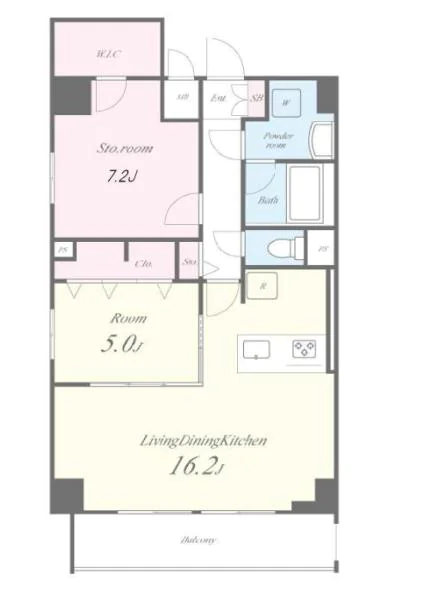 9階・1SLDKタイプのご紹介になります。リビング約16.2帖と横長の広々とした空間となっております。またリビング全体を見渡すことのできるカウンターキッチンなので小さなお子様がいらっしゃる家庭でも安心です。調理スペース・収納スペースも十分に確保されており、冷蔵庫・電子レンジもキッチンスペースに設置できるので効率的にお料理を進めることができます。リビング横の約5帖の居室と約7.2帖のサービスルームがございます。どちら収納が大容量本来のお部屋の広さを生かして家具家電のレイアウトができます。気になった方は、是非お問い合わせくださいませ。