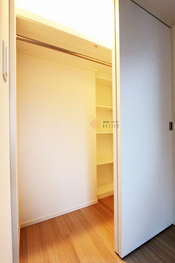 幅のあるウォークインクローゼットが御座いますので、荷物が多い方でもスッキリと収納可能。