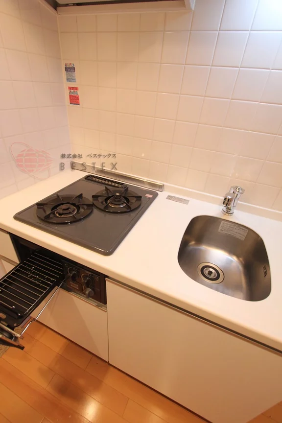 ③.キッチンは2口ガスコンロ+グリル付きのシステムキッチンです!