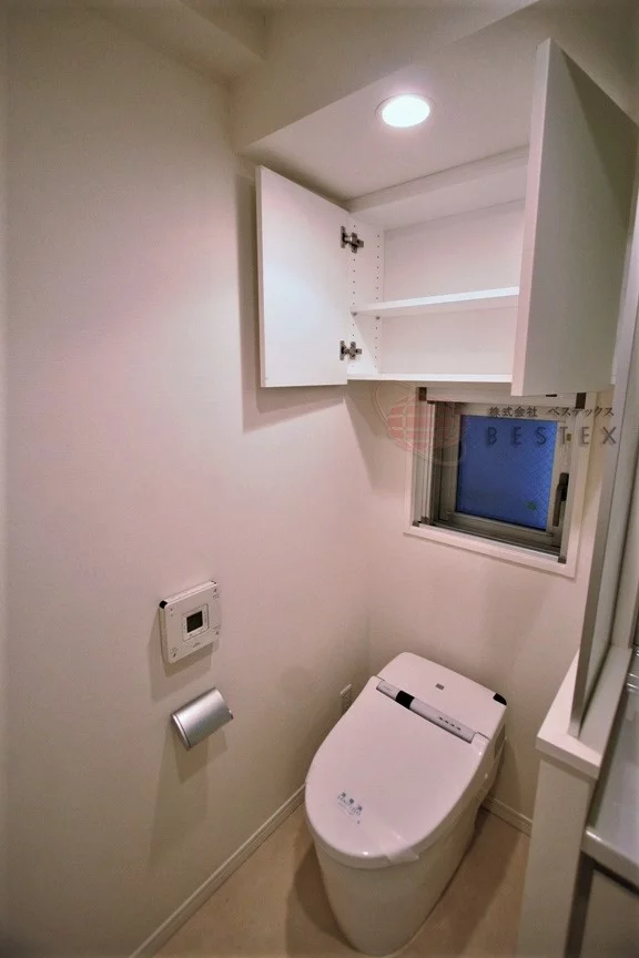 洗面所にはウォシュレット付きのトイレと独立洗面台完備でスタイリッシュかつコンパクトな空間となっております。