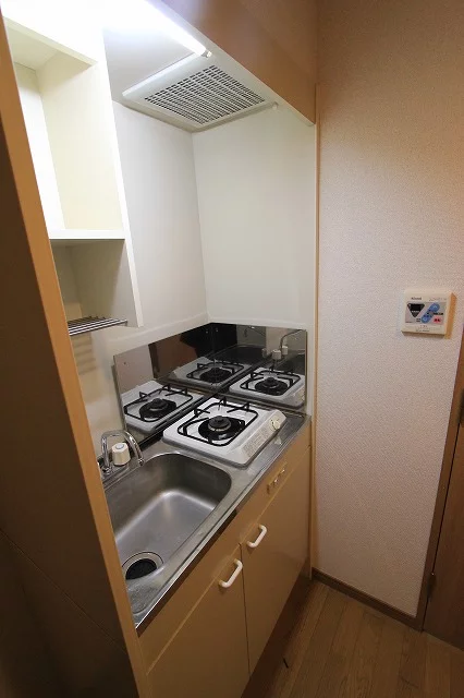 ・ガスコンロ2口付きシステムキッチン:高性能なビルトイン型です!グリルも付いています♪