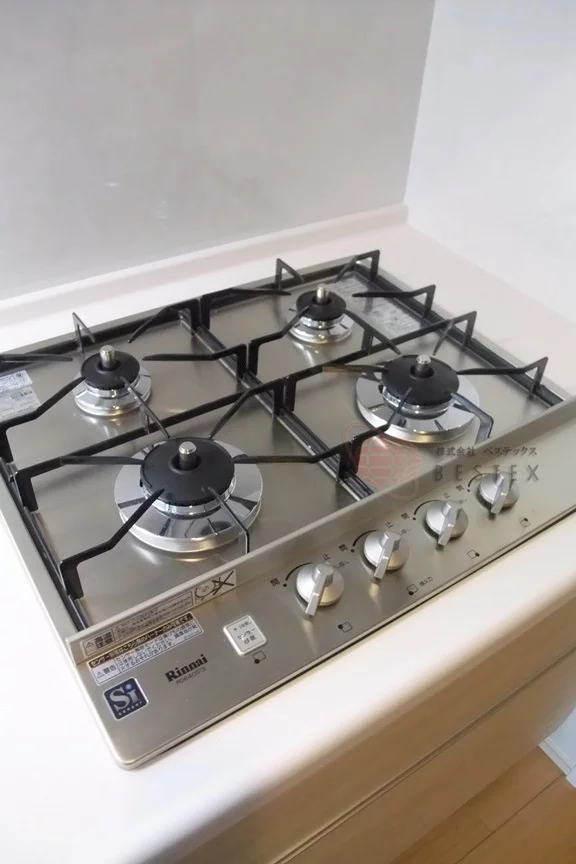 扉付近のキッチンには、4口ガスコンロ完備でのびのびお料理をお楽しみ頂けます!