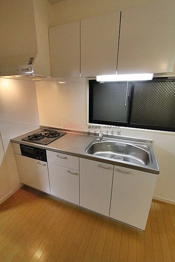 キッチンも2口ガスコンロの付いたシステムキッチンです。