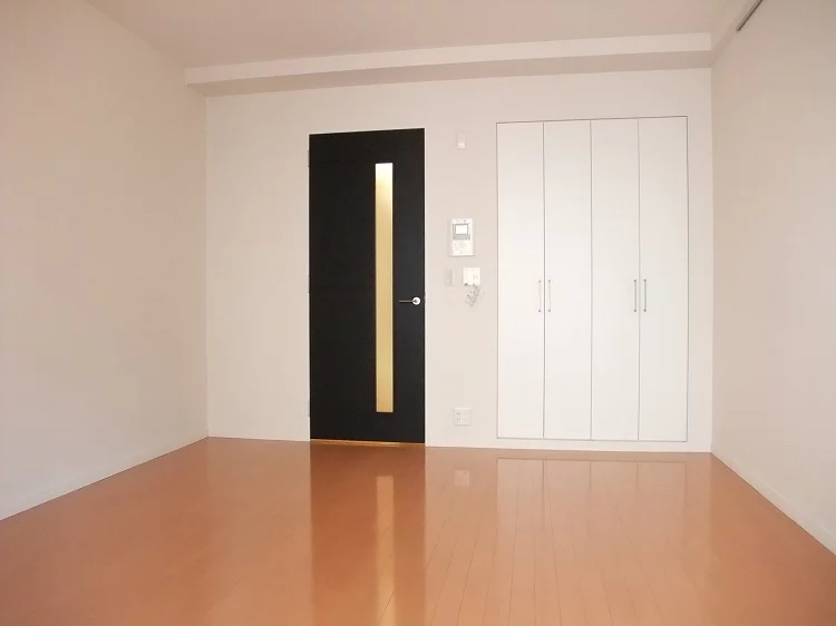 居室の広さは約12.9帖あり、「アウトフレーム工法」によりお部屋の中には柱がございませんので家具の配置や物の置き場に困ることも御座いません♪