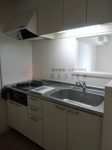 キッチンはカウンターキッチンとなっており、2口ガスコンロが備え付けられたシステムキッチンを採用しているので、料理が好きな人や、これから挑戦したい人にオススメです。