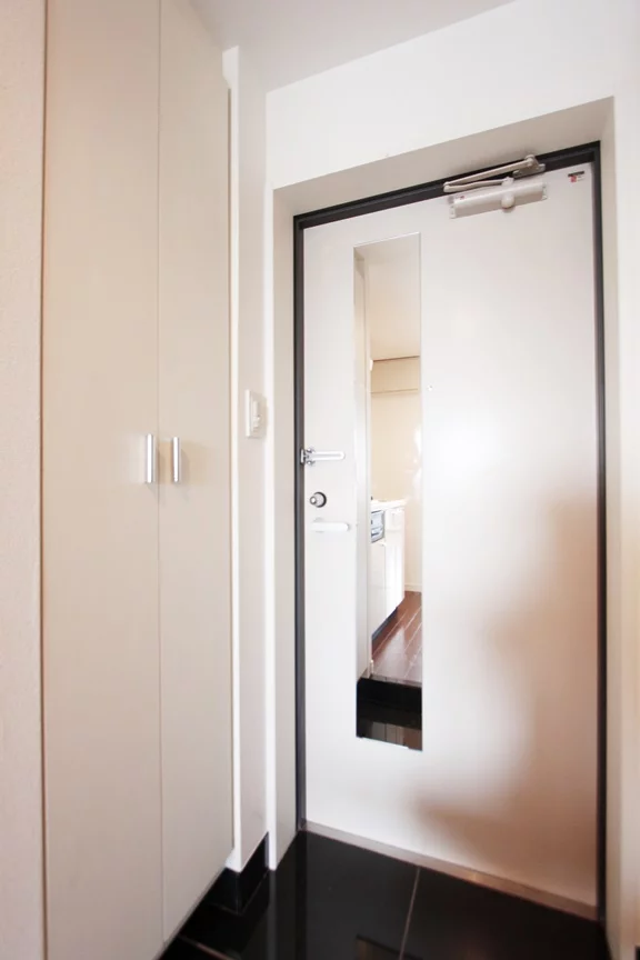 他にも室内洗濯機置場やシューズボックス、モニター付きインターホンがございます。玄関扉には、姿見鏡があるのでお出かけ前に容姿の確認ができます。