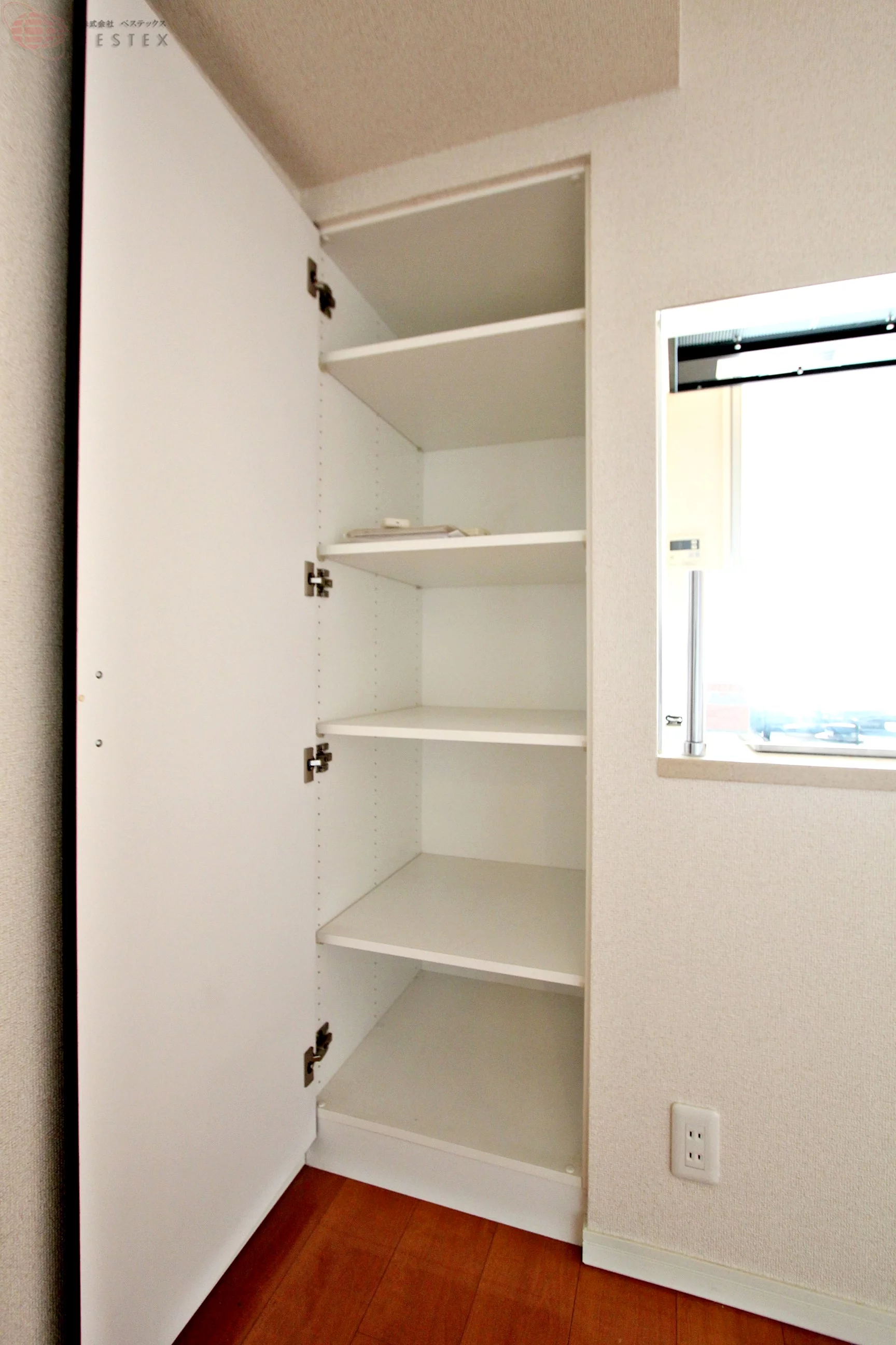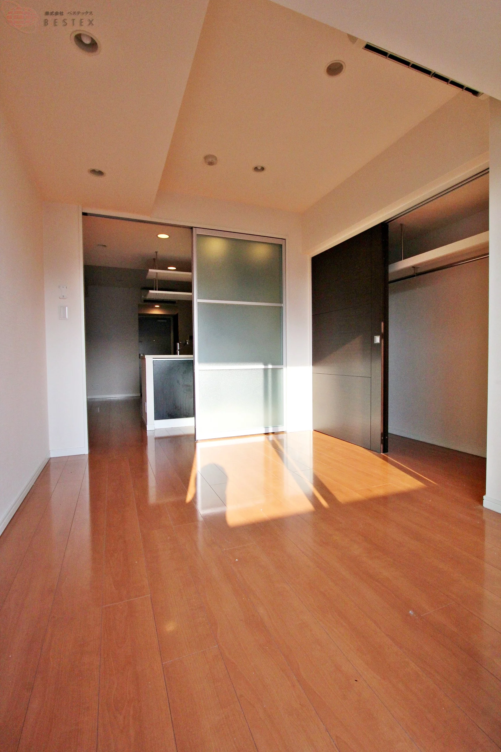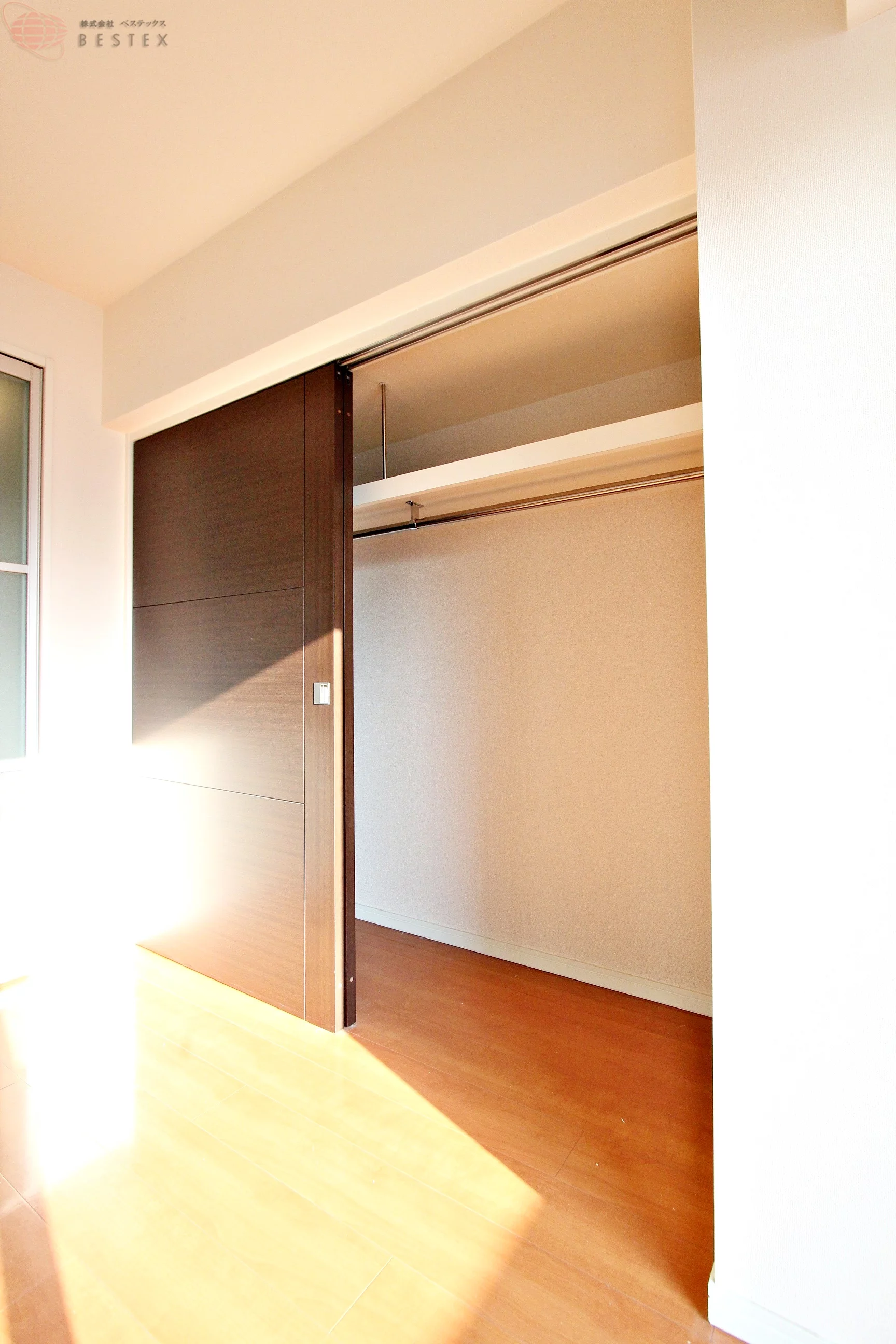 ①洋室は5帖!収納スペースの扉は引き戸になっていますので、お部屋のスペースを邪魔しません♪