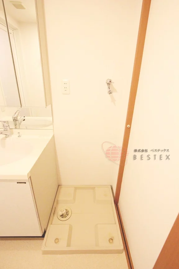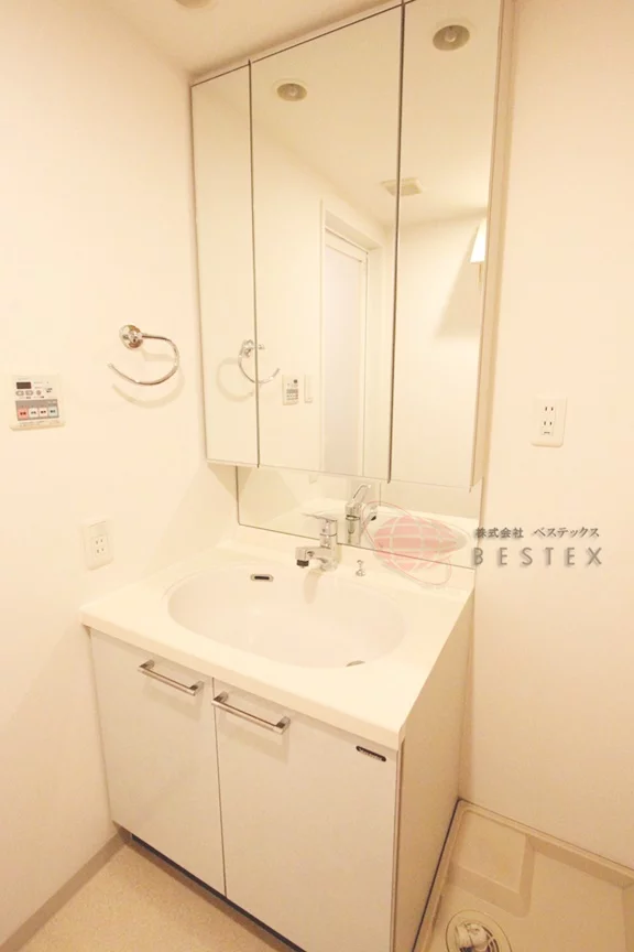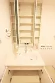 脱衣所を兼ねる洗面室には人気の独立洗面台、室内洗濯機置場を完備。